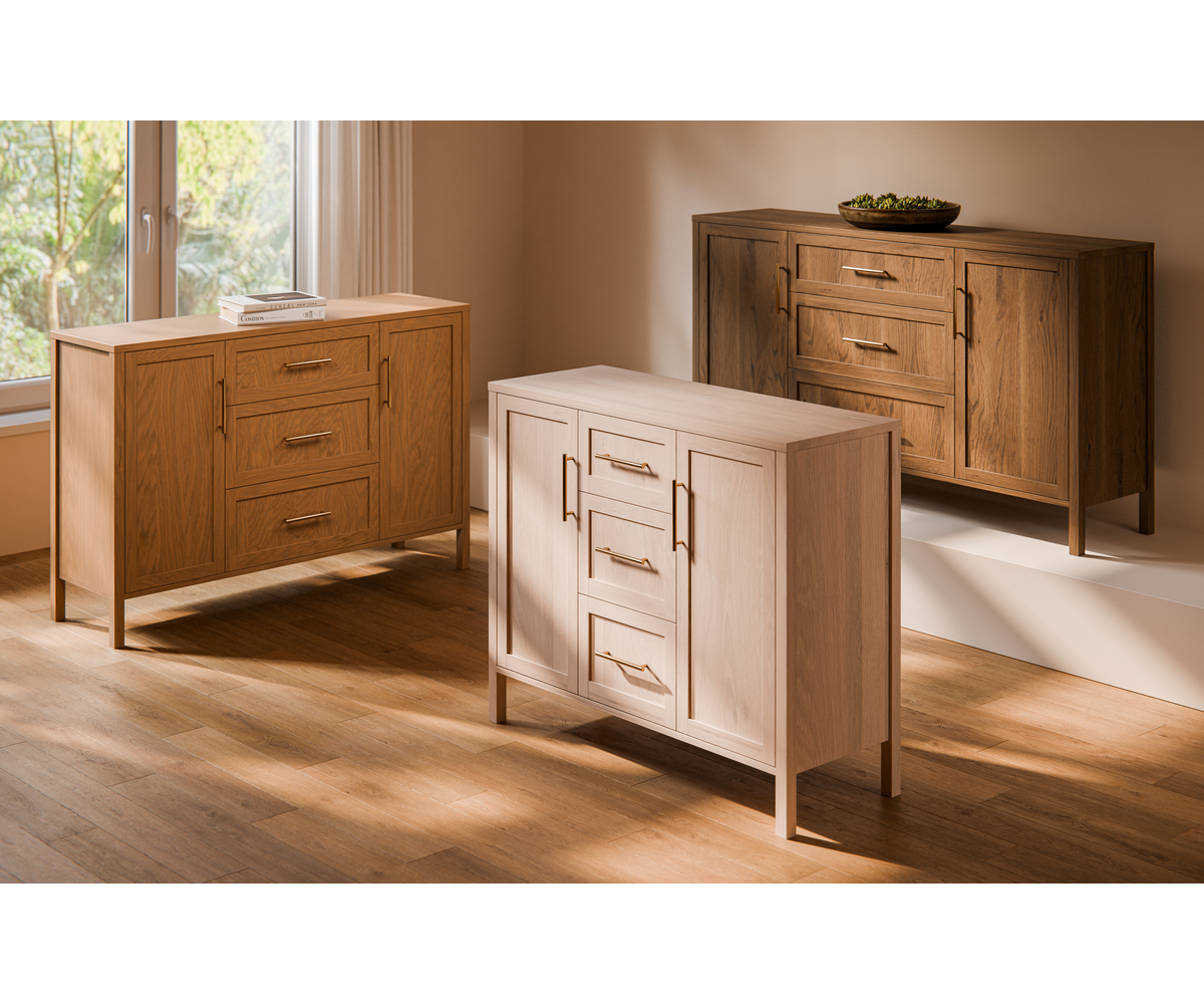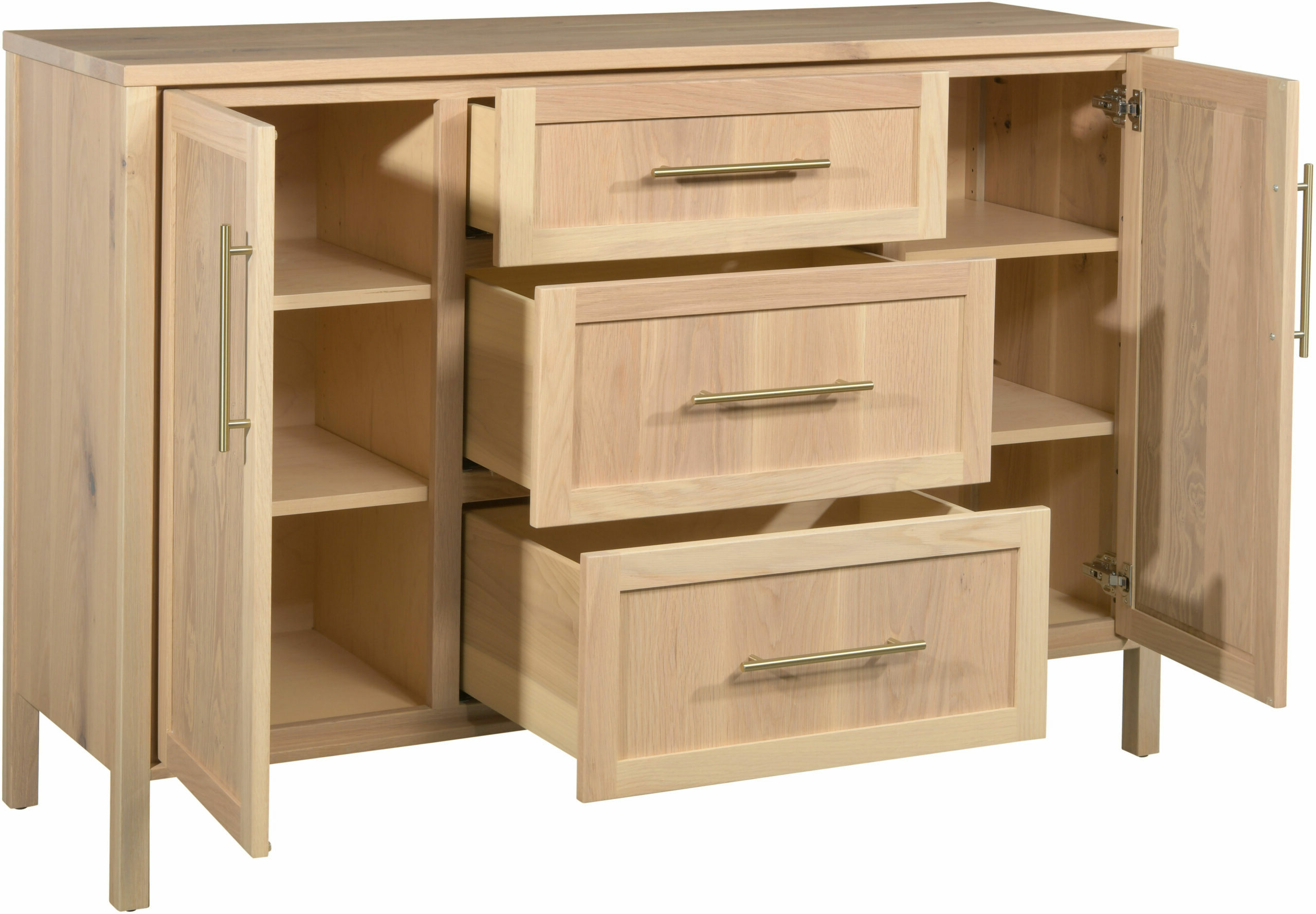 Features: • Dovetailed drawers • Soft close drawer slides • Two adjustable shelves behind each door